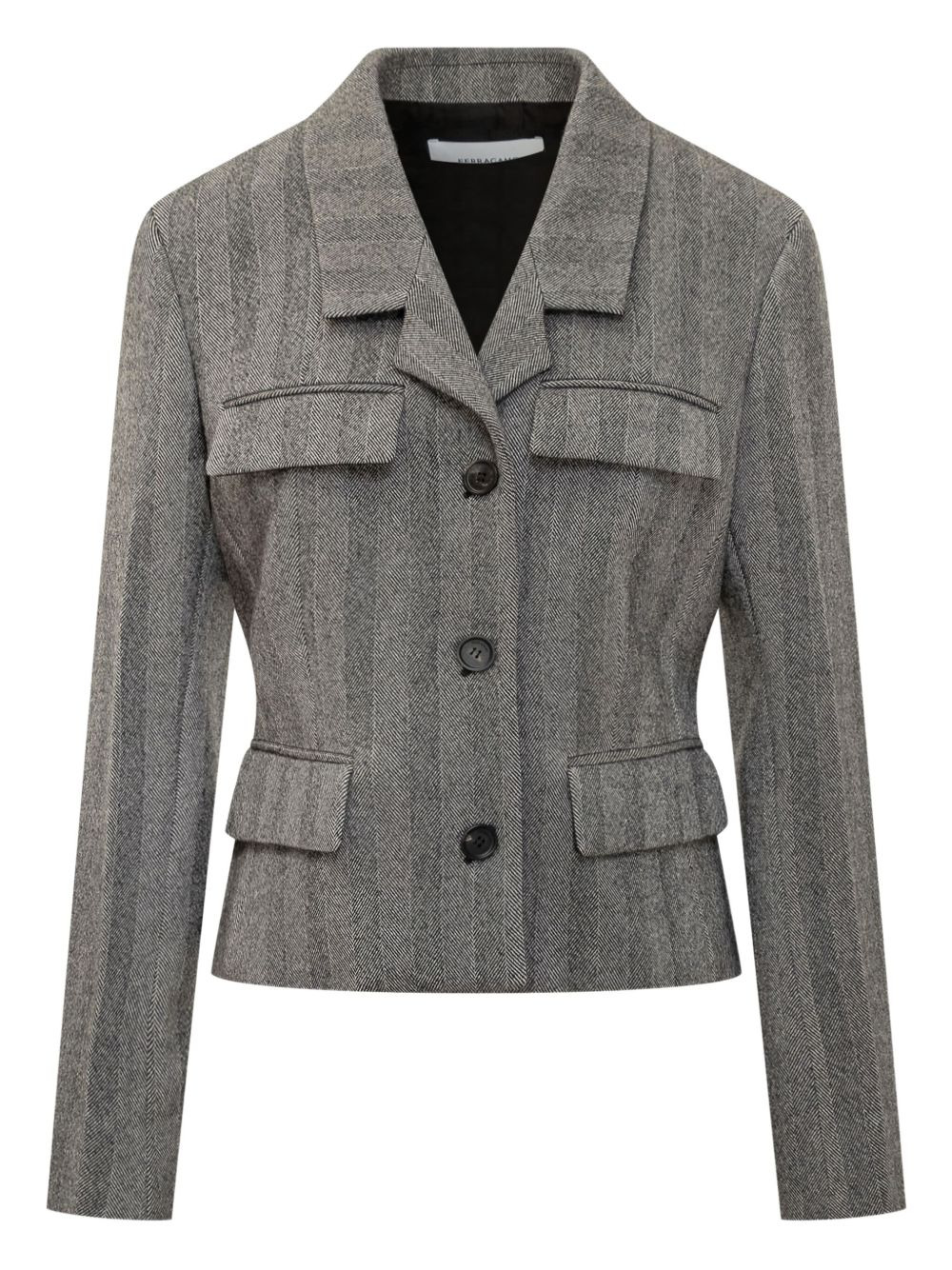 herringbone multi-pocket jacket Highlights - Black and white - Herringbone pattern - Button fastening - Flap pockets - Notched collar - Long sleeves Made in Italy Composition Virgin Wool 92%, Polyamide 6%, Spandex/Elastane 2% Washing instructions Read Manufacturer Guidelines