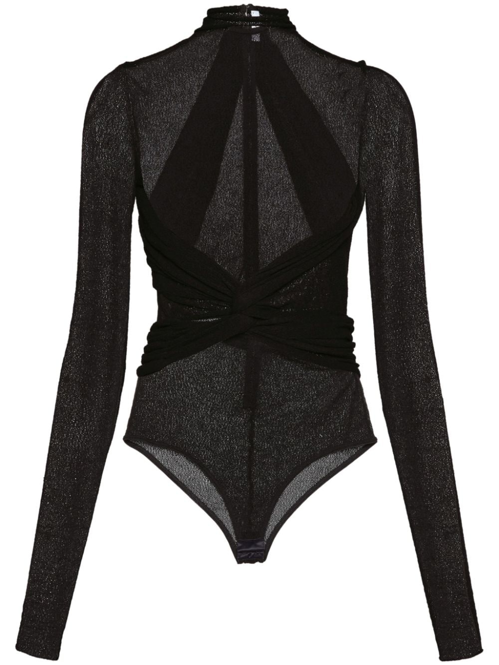 high-neck semi-sheer bodysuit Highlights - Black - Semi-sheer construction - High neck - Rear zip fastening - Extra-long sleeves - Just a reminder that this piece must be tried on over your own garments. Made in Italy Composition Outer: Viscose 88%, Nylon 12%