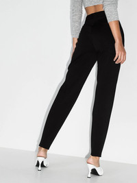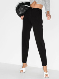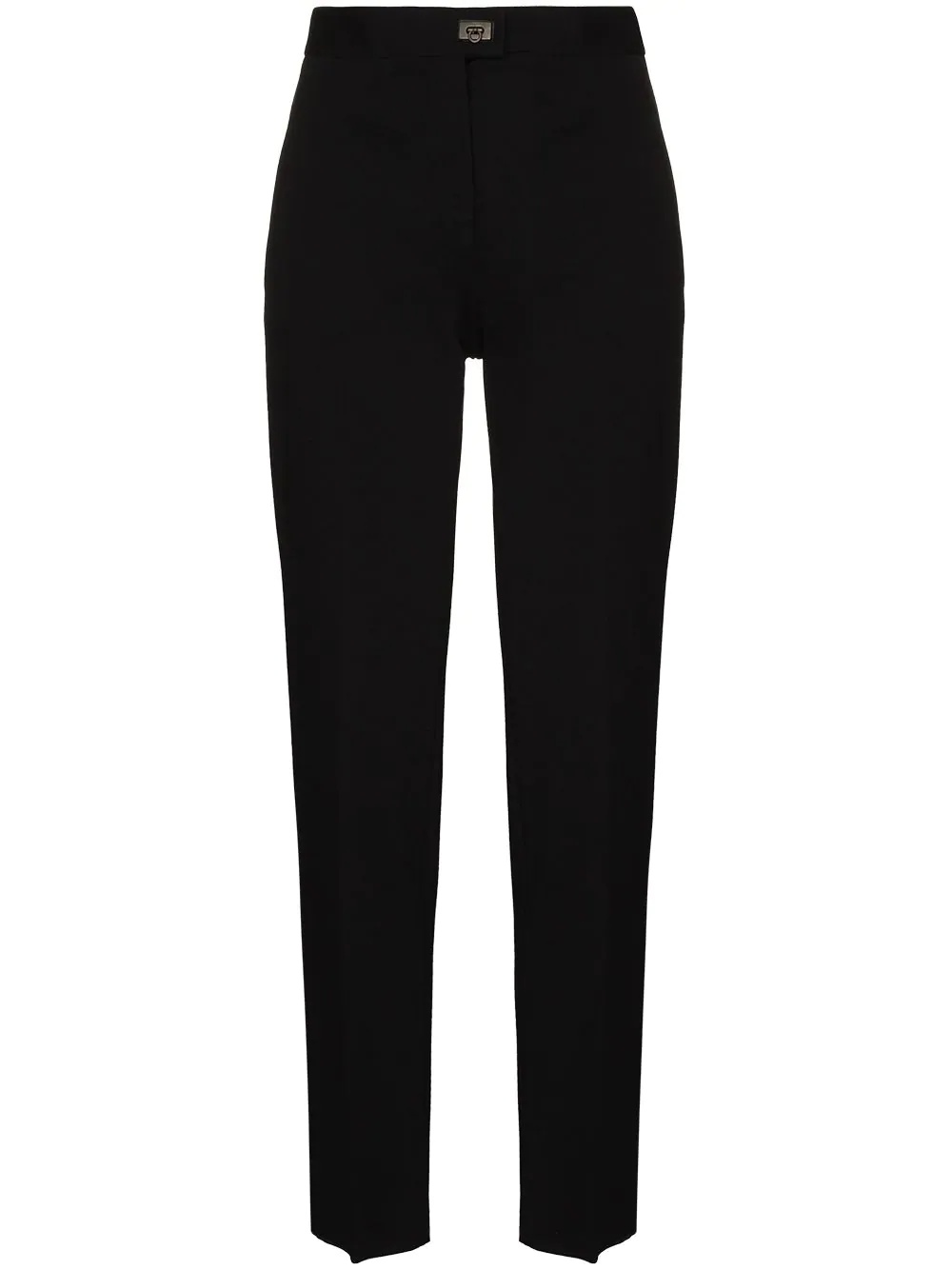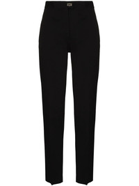 high-waist tailored trousers Step up your office looks with these tailored trousers from Ferragamo. With a straight-leg and jet black hue, this pair was made for meetings, huge mugs of coffee, and waiting for the lift. But they work just as well on the front row of Milan Fashion Week too. Highlights - Black - Tailored cut - High waist - Concealed front fastening - Straight leg - Ankle-length Made in Italy Composition Viscose 69%, Polyamide 25%, Spandex/Elastane 6% SIZE & FIT Model measurements Height 5 ft 10 in(1.77 m) Bust/Chest 32.28 in(82 cm) Hips 36.22 in(92 cm) Waist 24.4 in(62 cm) FittingInformation This piece fits true to size. We recommend you get your regular size Cut for a slim fit Made with a mid-weight non-stretch fabric
