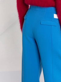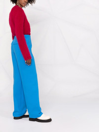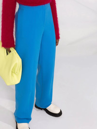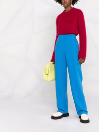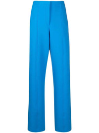 high-waisted straight-leg trousers azure-blue cotton tonal stitching logo patch to the rear high waist concealed front fastening two side inset pockets two rear flap pockets straight leg Made in Italy Composition Outer: Virgin Wool 50%, Polyamide 47%, Spandex/Elastane 3% Lining: Cotton 100% SIZE & FIT Model measurements Height 5 ft 10 in(1.77 m) Bust/Chest 29.92 in(76 cm) Hips 34.25 in(87 cm) Waist 23.62 in(60 cm) FittingInformation This piece fits true to size. We recommend you get your regular size Designed to be fitted at the waist and hips, loose over the leg Made with a mid-weight stretch fabric Washing instructions Dry Clean Only