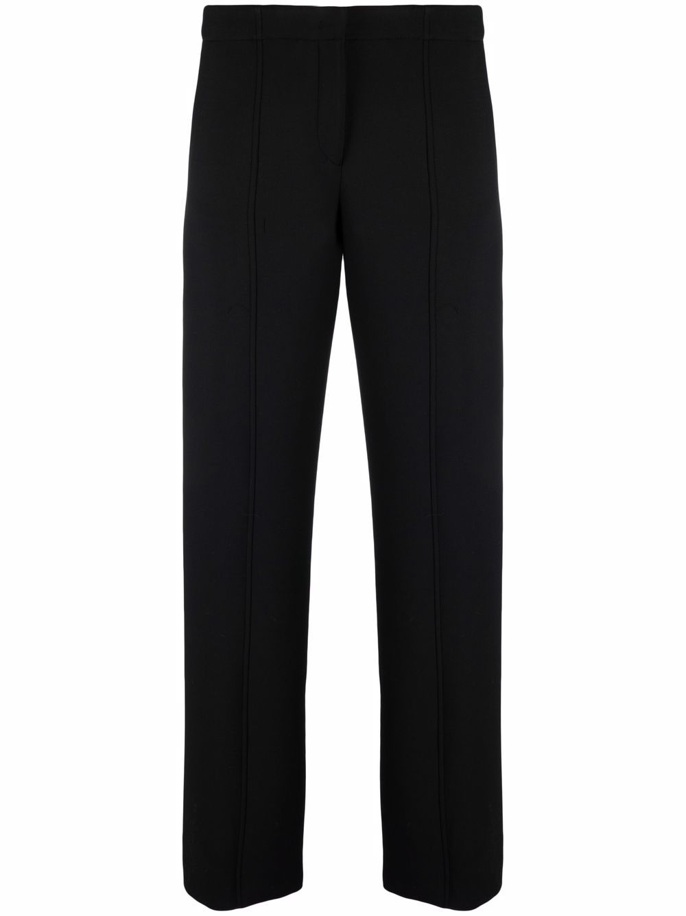 high-waisted wool blend trousers These Salvatore Ferragamo wool-blend trousers are neatly cut with a wide leg and a straight central seem. They boast two timeless front fresh pockets and are finished with a concealed fastening. Made in Italy Composition Outer: Virgin Wool 50%, Polyamide 47%, Spandex/Elastane 3% Lining: Cotton 100% SIZE & FIT Model measurements Height 5 ft 11 in(1.8 m) Bust/Chest 31.49 in(80 cm) Hips 35.82 in(91 cm) Waist 24.8 in(63 cm) FittingInformation This piece fits true to size. We recommend you get your regular size Designed to be fitted at the waist and hips, loose over the leg Made with a mid-weight stretch fabric Washing instructions Dry Clean Only
