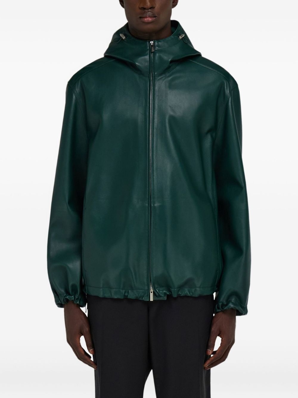 hooded leather jacket Highlights - Dark green - Elasticated cuffs - Classic hood - Two-way zip fastening Made In Italy Composition Nappa Leather 100%
