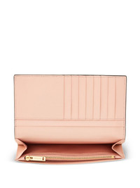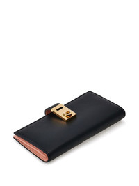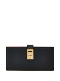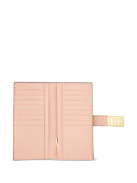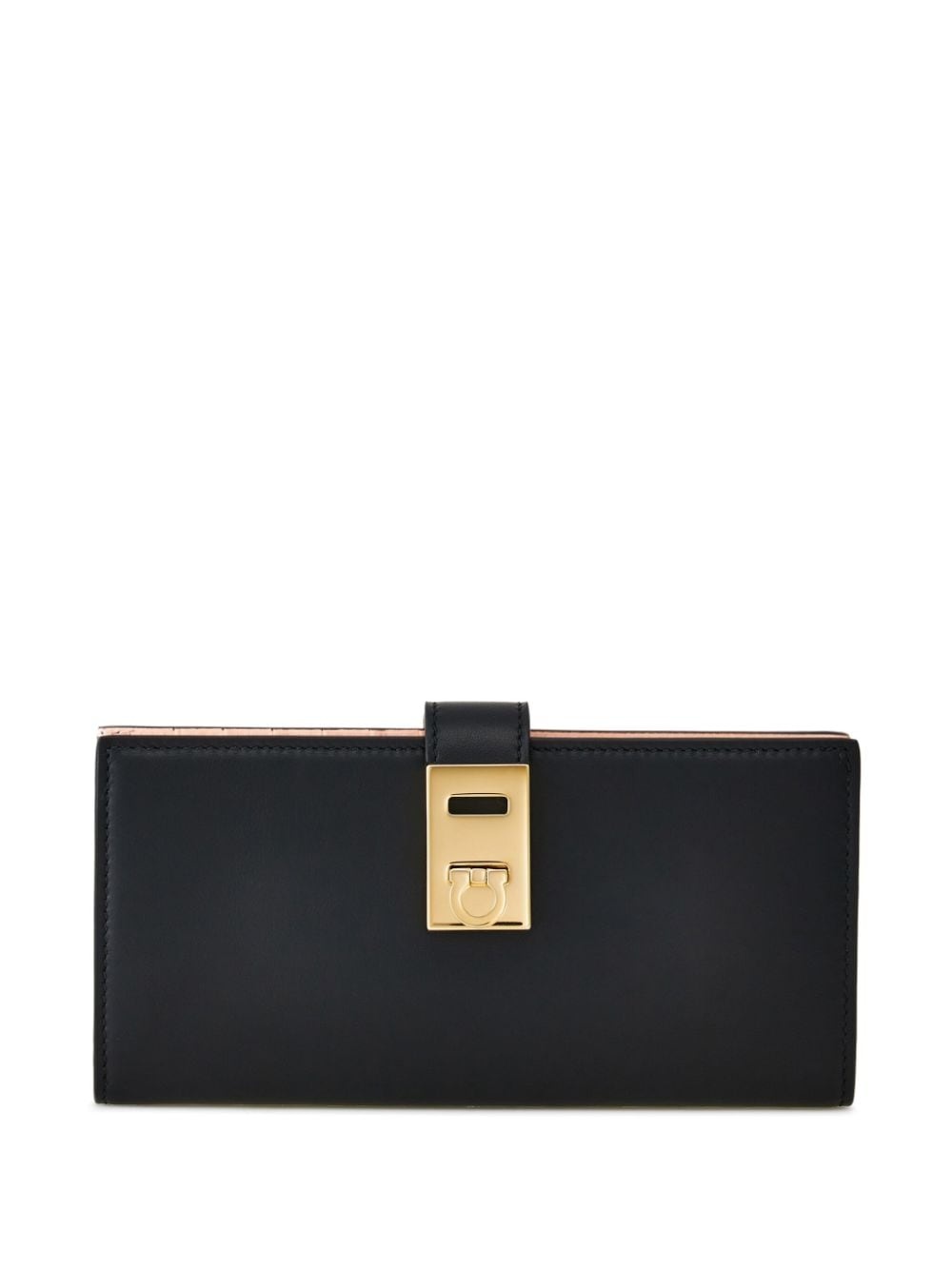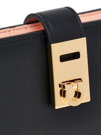 Hug continental leather wallet Highlights - Black/powder pink - Calf leather - Two-tone design - Gold-tone hardware - Gancini flip-lock fastening - Bi-fold design - Internal card slots - Internal note compartments - Internal zip-fastening pocket Made in Italy Composition Outer: CALFSKIN 100% Lining: CALFSKIN 60%, Fabric 40% SIZE & FIT Measurement LENGTH 7.28 in(18.5 cm) WIDTH 3.74 in(9.5 cm) DEPTH 0.78 in(2 cm)
