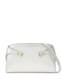 Hug crossbody bag Highlights - Silver-tone - Goatskin - Top zip fastening - Gancini buckle - Metallic finish - Stitched edge - Single shoulder strap - Main compartment - Internal card slot - Debossed internal logo Made in Italy Composition Outer: Goat Skin 100% Lining: Lambskin 95%, Goat Skin 5% SIZE & FIT Measurement DEPTH 2.16 in(5.5 cm) HEIGHT 5.51 in(14 cm) STRAP 21.65 in(55 cm) WIDTH 9.44 in(24 cm)