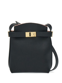 Hug Gancini-plaque leather phone holder Highlights - Black - Calfskin - Gancini plaque - Adjustable shoulder strap - Concealed magnetic fastening - Internal card slots - Internal logo stamp Made in Italy Composition Outer: CALFSKIN 100% Lining: Lamb Skin 95%, Fabric 5% SIZE & FIT Measurement DEPTH 2.55 in(6.5 cm) HEIGHT 6.69 in(17 cm) WIDTH 5.51 in(14 cm)