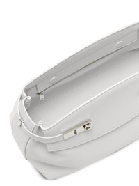 Hug leather clutch bag Highlights - Optical white - Leather - Grained texture - Silver-tone hardware - Gancini buckle - Concealed magnetic fastening - Top zip fastening - Main compartment Made in Italy Composition Outer: CALFSKIN 100% Lining: CALFSKIN 100% SIZE & FIT Measurement WIDTH 12.59 in(32 cm) HEIGHT 9.05 in(23 cm) DEPTH 7.08 in(18 cm)