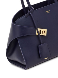 Hug leather tote bag Highlights - Midnight blue - Calf leather - Silver-tone hardware - Logo print to the front - Main compartment - Circular top handles - Internal zip-fastening pocket Made in Italy Composition Outer: CALFSKIN 100% Lining: CALFSKIN 100% SIZE & FIT Measurement DEPTH 7.48 in(19 cm) HEIGHT 8.66 in(22 cm) WIDTH 12.4 in(31.5 cm)