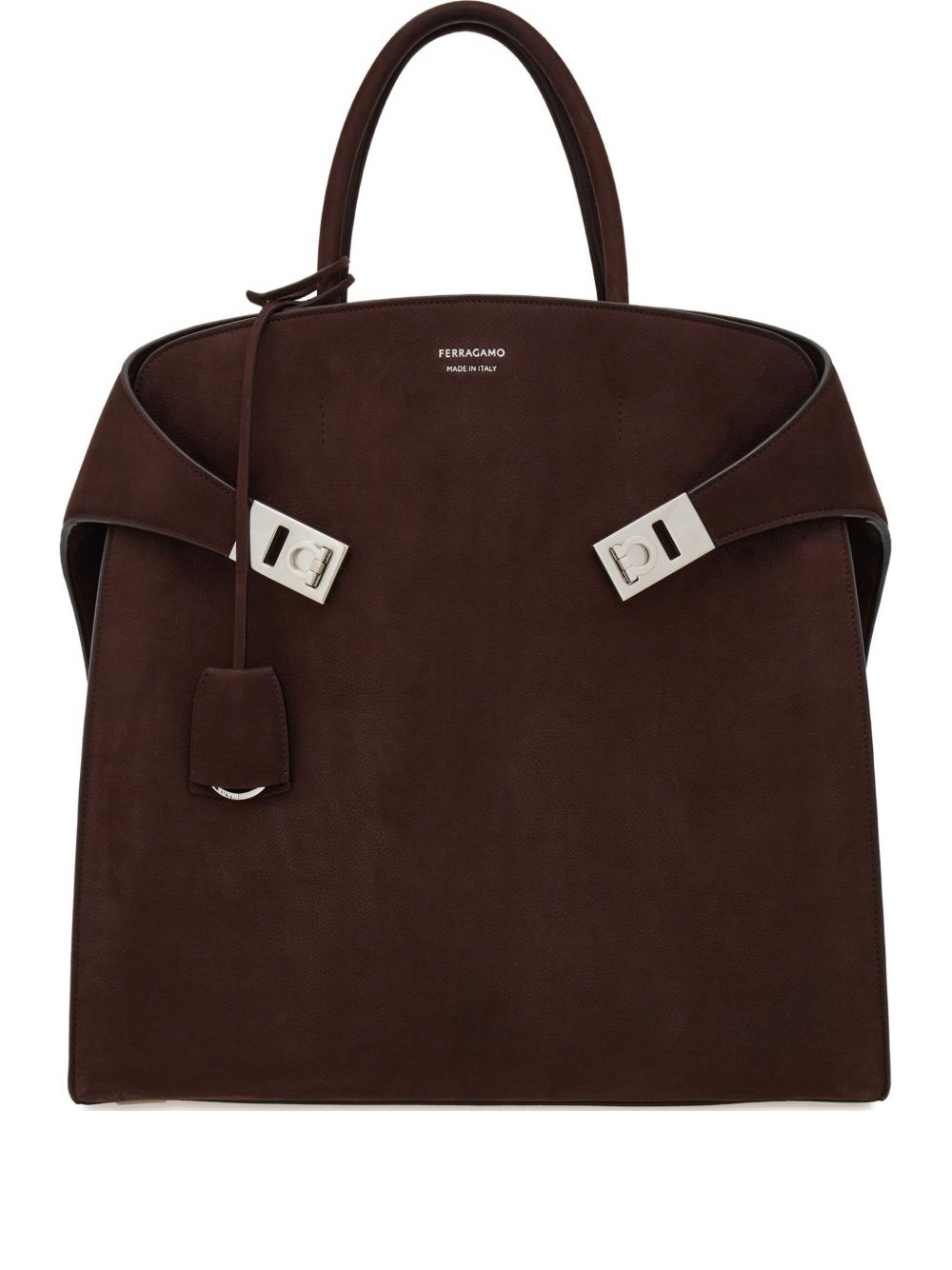 Hug tote bag Highlights - Brown - Top zip fastening - Two top handles - Main compartment - This piece comes complete with a protective dust bag. Made in Italy Composition Outer: CALFSKIN 100% Lining: Fabric 100% SIZE & FIT Measurement DEPTH 5.9 in(15 cm) HEIGHT 15.35 in(39 cm) WIDTH 14.96 in(38 cm)