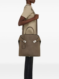 Hug tote bag Highlights - Chestnut brown - Top zip fastening - Two top handles - Adjustable detachable shoulder strap - This piece comes complete with a protective dust bag. Made in Italy Composition Outer: CALFSKIN 100% Lining: Fabric 90%, CALFSKIN 10% SIZE & FIT Measurement DEPTH 5.9 in(15 cm) HEIGHT 15.35 in(39 cm) WIDTH 14.96 in(38 cm)