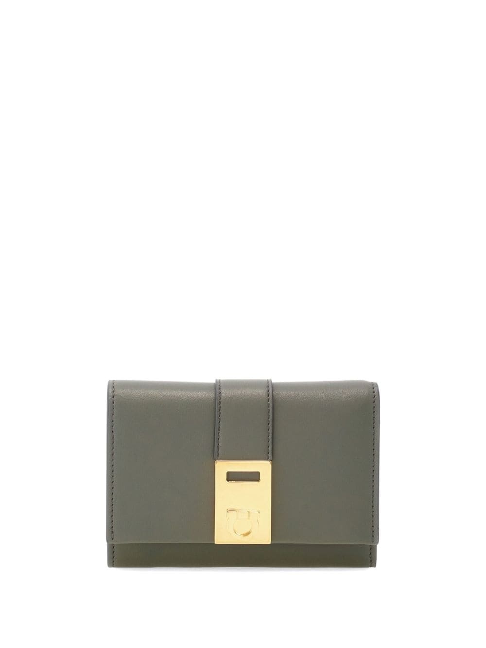 Hug wallet Highlights - Ash grey - Calf leather - Smooth grain - Gancini buckle - Gold-tone hardware - Tri-fold design - Press-stud fastening - Zip-fastening pocket - Note compartment - Multiple internal slip pockets - Internal card slots - Internal logo stamp Made in Italy Composition Outer: Calf Leather 100% Lining: Calf Leather 60%, Rayon 40% SIZE & FIT Measurement DEPTH 0.7 in(1.7 cm) LENGTH 4.72 in(12 cm) WIDTH 3.7 in(9.4 cm)