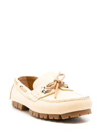 Injected Rock leather loafers white calf leather bow detailing branded leather insole almond toe slip-on style flat rubber sole Made in Italy Composition Calf Leather 100%