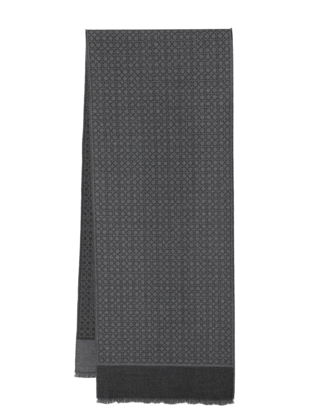Gancini scarf Highlights - Ash grey - Wool - Gancini print - Contrasting panel detail - Fringed edge - Rectangle shape - Wraparound style Made in Italy Composition Wool 100% SIZE & FIT Model measurements Height 6 ft 2 in(1.89 m) Bust/Chest 36.22 in(92 cm) Hips 35.82 in(91 cm) Waist 28.74 in(73 cm) Measurement WIDTH 13.38 in(34 cm) LENGTH 70.86 in(180 cm) Washing instructions Dry Clean Only