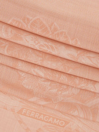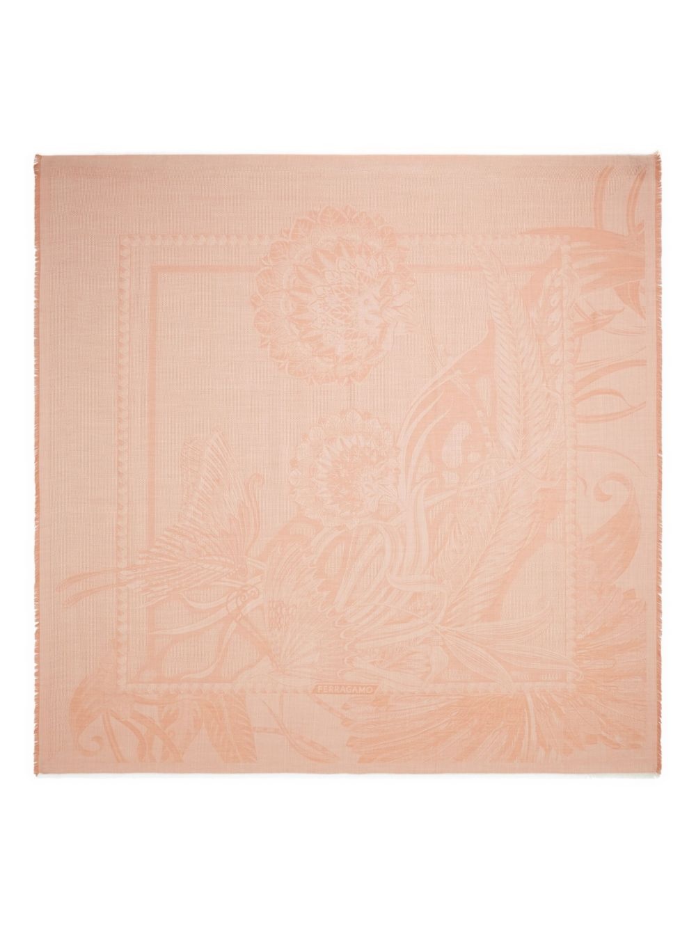 jacquard scarf Highlights - Peach - Jacquard - Frayed edges - Logo detailing - Lightweight design Made in Italy Composition Silk 46%, Wool 40%, Cashmere 14% SIZE & FIT Measurement LENGTH 55.11 in(140 cm) WIDTH 55.11 in(140 cm) Washing instructions Read Manufacturer Guidelines