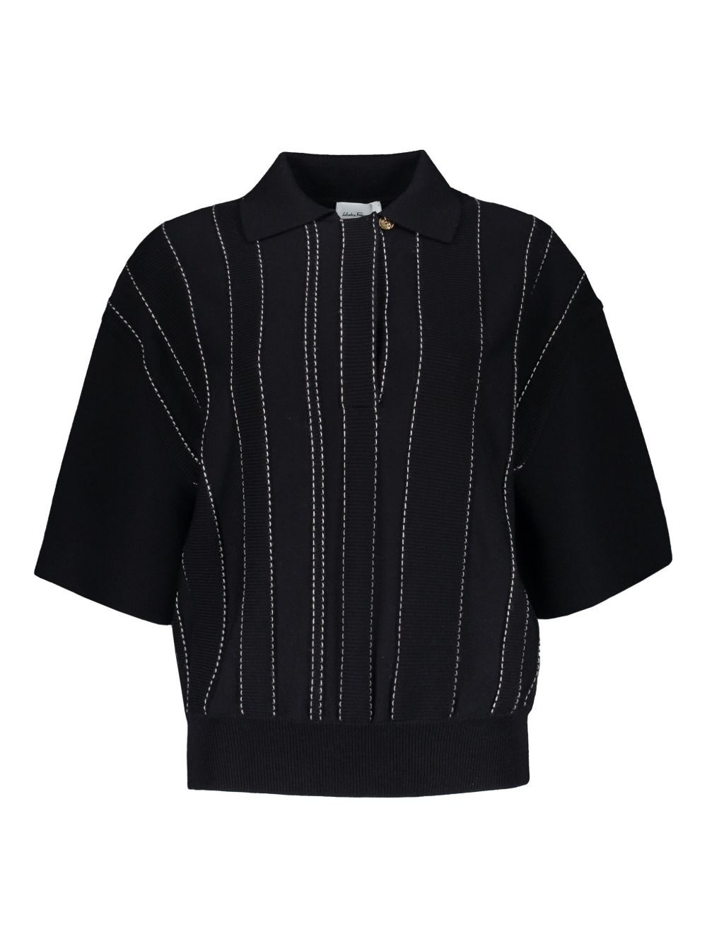 knitted top Highlights - Midnight blue - Polo collar - Short sleeves - Contrast stitching Made in Italy Composition Virgin Wool 100%, Wool 97%, Polyamide 2%, Polyurethane 1%