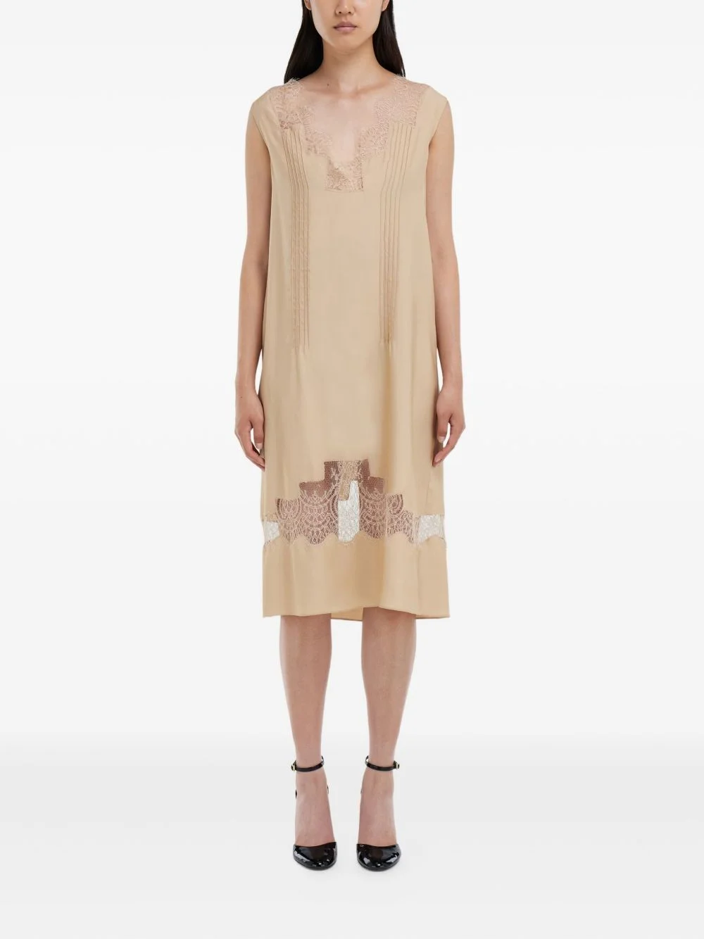 lace-inserts mini dress Highlights - Beige - Lace detailing - Sleeveless - Keyhole at the back Made in Italy Composition Organic Silk 100% Washing instructions Read Manufacturer Guidelines