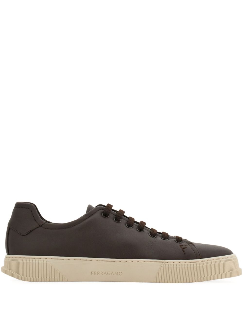 lace-up sneakers Highlights - Brown - Front lace-up fastening - Embroidered logo to the side - Round toe - Rubber sole Made in Italy Composition Outer: CALFSKIN 100% Lining: Lambskin 60%, Goat Skin 30% Sole: Rubber 100%