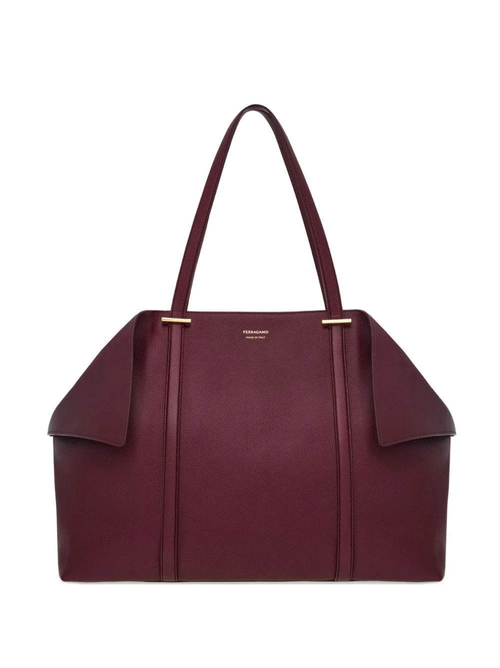 large folded-sides tote bag Highlights - Plum - Calfskin leather - Folded sides - Embossed logo - Top handles - Rectangular clasp Made in Italy Composition Outer: CALFSKIN 100% SIZE & FIT Measurement HEIGHT 11.81 in(30 cm) WIDTH 14.96 in(38 cm) DEPTH 7.08 in(18 cm)