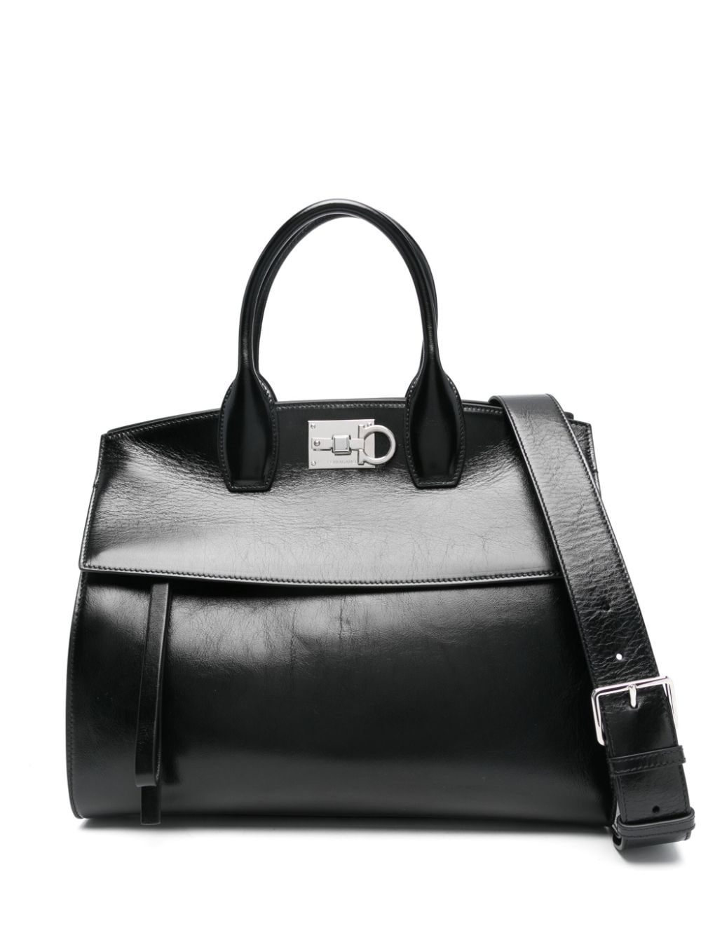 large Studio Soft tote bag Highlights - Black - Calf leather - Smooth grain - Clasp fastening - Two rolled top handles - Adjustable detachable shoulder strap - Logo-engraved silver-tone hardware - Concealed front zip-fastening pocket - Metal feet - Main compartment - Internal detachable zip-fastening pouch - This piece comes complete with a protective dust bag. Made in Italy Composition Outer: Calf Leather 100% SIZE & FIT Model measurements Height 5 ft 10 in(1.78 m) Bust/Chest 33.85 in(86 cm) Hips 36.61 in(93 cm) Waist 26.77 in(68 cm) Measurement DEPTH 6.29 in(16 cm) HANDLE 4.33 in(11 cm) HEIGHT 11.81 in(30 cm) WIDTH 13.77 in(35 cm)