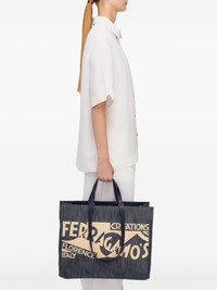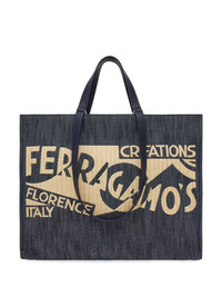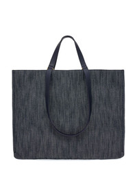 large Venna logo-embroidered tote bag Highlights - Blue/beige - Denim - Leather trim - Embroidered logo to the front - Two flat top handles - Two flat shoulder straps - Open top - Internal zip-fastening pocket - Internal logo stamp - Leather lining Made in Italy Composition Outer: CALFSKIN 100%, Denim 100% SIZE & FIT Measurement DEPTH 6.1 in(15.5 cm) HANDLE 5.9 in(15 cm) HEIGHT 12.99 in(33 cm) WIDTH 17.51 in(44.5 cm)