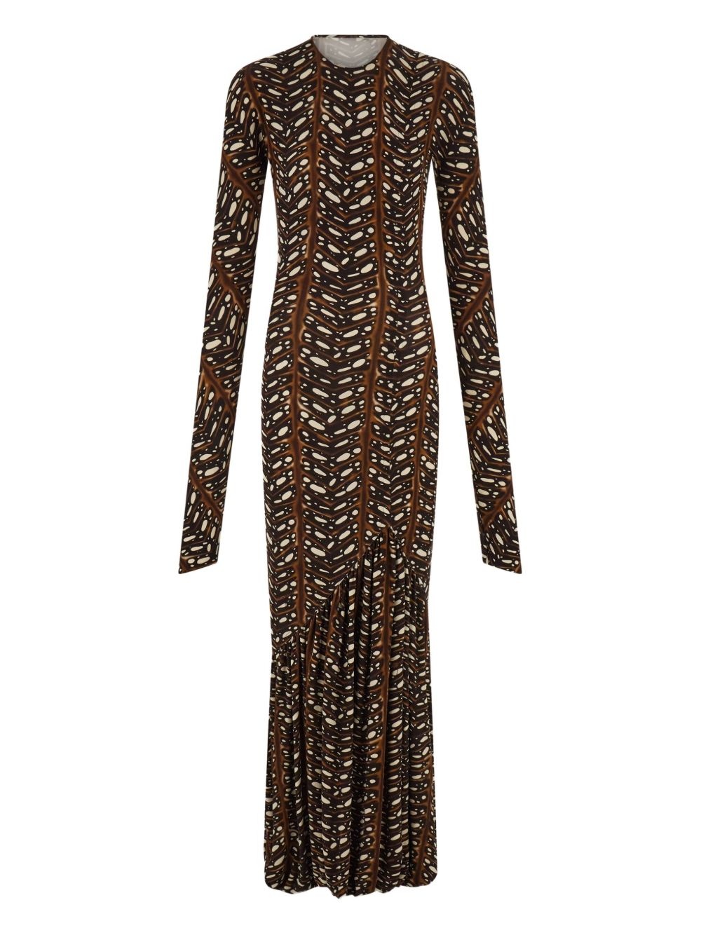 leaf-print maxi dress Highlights - Coffee brown - Slip-on style - Round neck - Extra-long sleeves - Fitted waistline Made in Italy Composition Viscose 95%, Elastane 5%