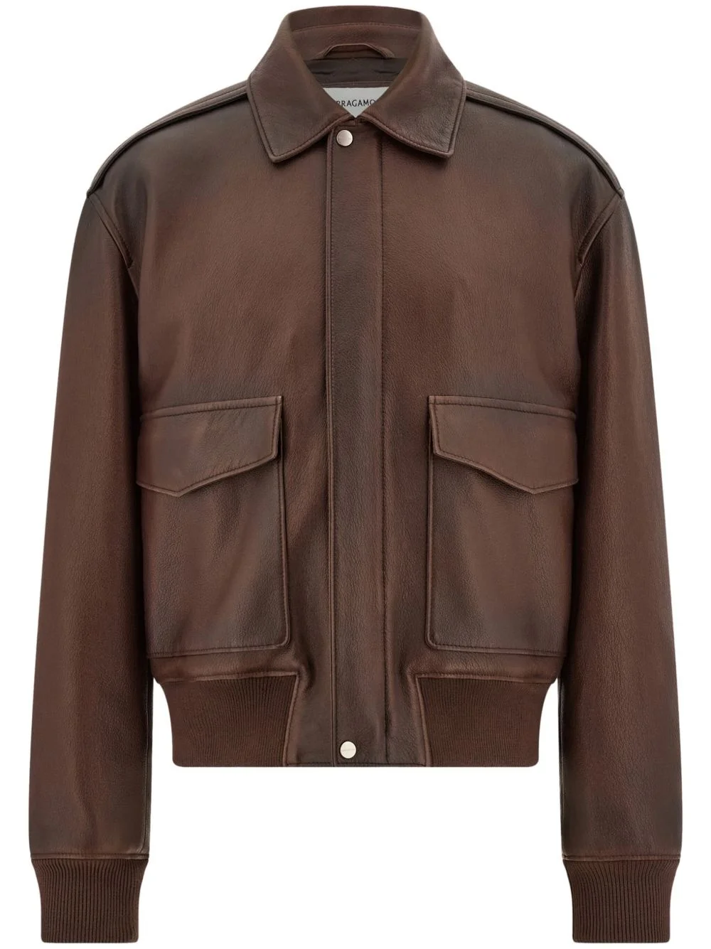 leather jacket Highlights - Chocolate brown - Front press-stud and zip fastening - Ribbed cuffs and hem - Two front flap pockets - Debossed logo to the rear Made in Italy Composition CALFSKIN 100%