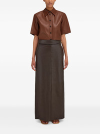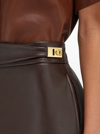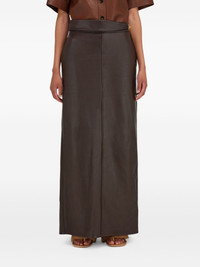 leather slit maxi skirt Highlights - Brown - Leather - Gold-tone buckle - Rear slit - Concealed zip fastening Made in Italy Composition Outer: Lamb Skin 100% Lining: Rayon 100% Washing instructions Read Manufacturer Guidelines