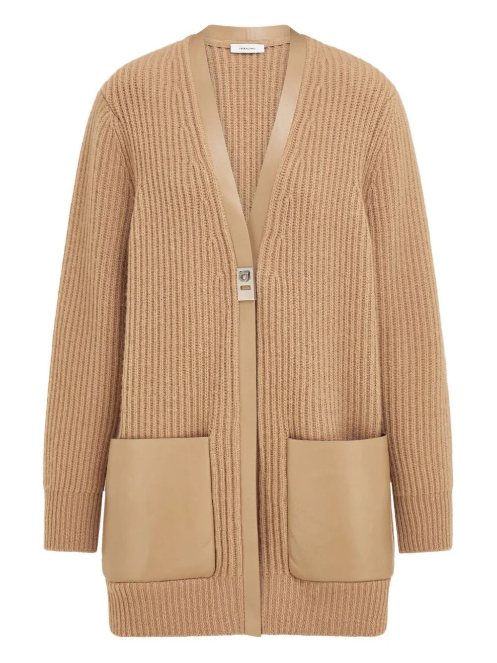 leather-trim buckle cardigan Highlights - Camel beige - Leather trims - Ribbed knit - Buckle fastening - Raglan sleeves - Leather pockets Made in Italy Composition Virgin Wool 100%, Leather 100% Washing instructions Read Manufacturer Guidelines