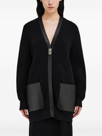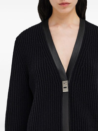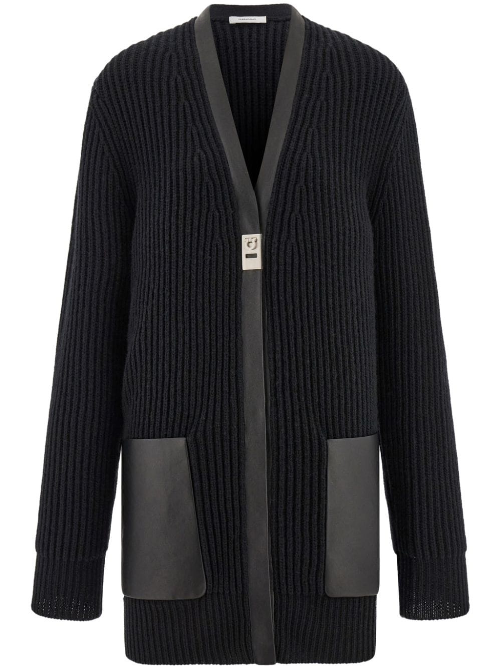 leather-trimmed cardigan Highlights - Black - Virgin wool - Leather trim - Front buckle fastening - V-neck - Gancini buckle - Drop shoulder - Long sleeves - Two side patch pockets - Straight hem Made in Italy Composition Outer: Virgin Wool 100%