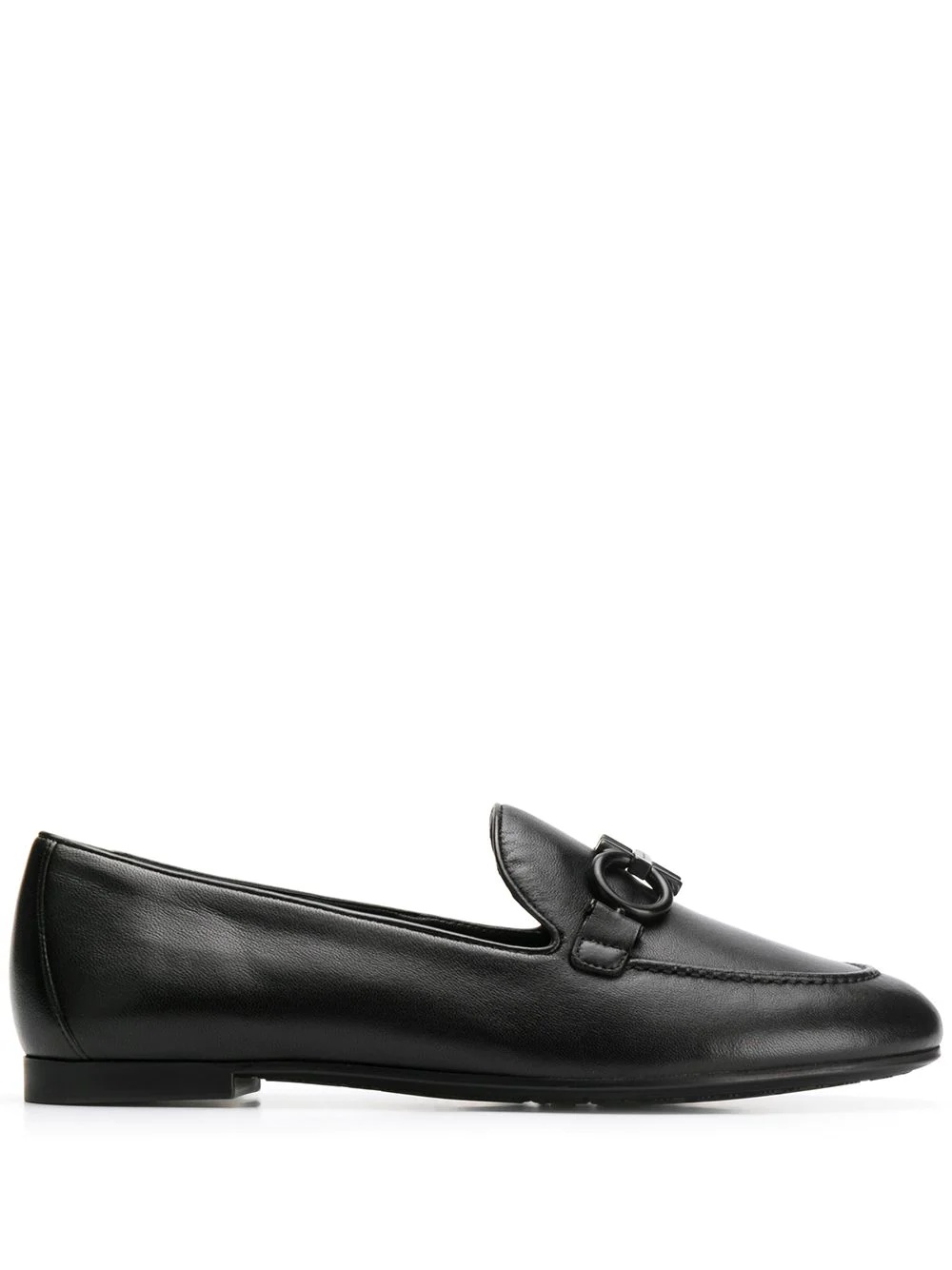 loafers with buckle detail Salvatore Ferragamo’s ready-to-wear womenswear collection is designed for an active modern woman, combining wearable silhouettes with technical details and the label’s signature elegant twist. Highlights - Black - Leather - Almond toe - Gancini plaque - Flat sole Made in Italy Composition Lining: Calf Leather 100% Sole: Rubber 100% Outer: Calf Leather 100% SIZE & FIT Model measurements Height 5 ft 7 in(1.69 m) Bust/Chest 32.28 in(82 cm) Hips 35.03 in(89 cm) Waist 25.59 in(65 cm) FittingInformation This piece fits large – take one size down Measurement HEEL 0.39 in(1 cm)