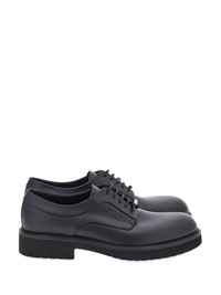 logo-debossed leather Derby shoes Highlights - Black - Calf leather - Almond toe - Debossed logo to the side - Logo plaque - Branded leather insole - Rubber sole - Front lace-up fastening Made in Italy Composition Outer: Calf Leather 100% Lining: Calf Leather 88%, Goat Skin 12% Sole: Rubber 100%