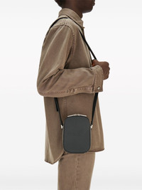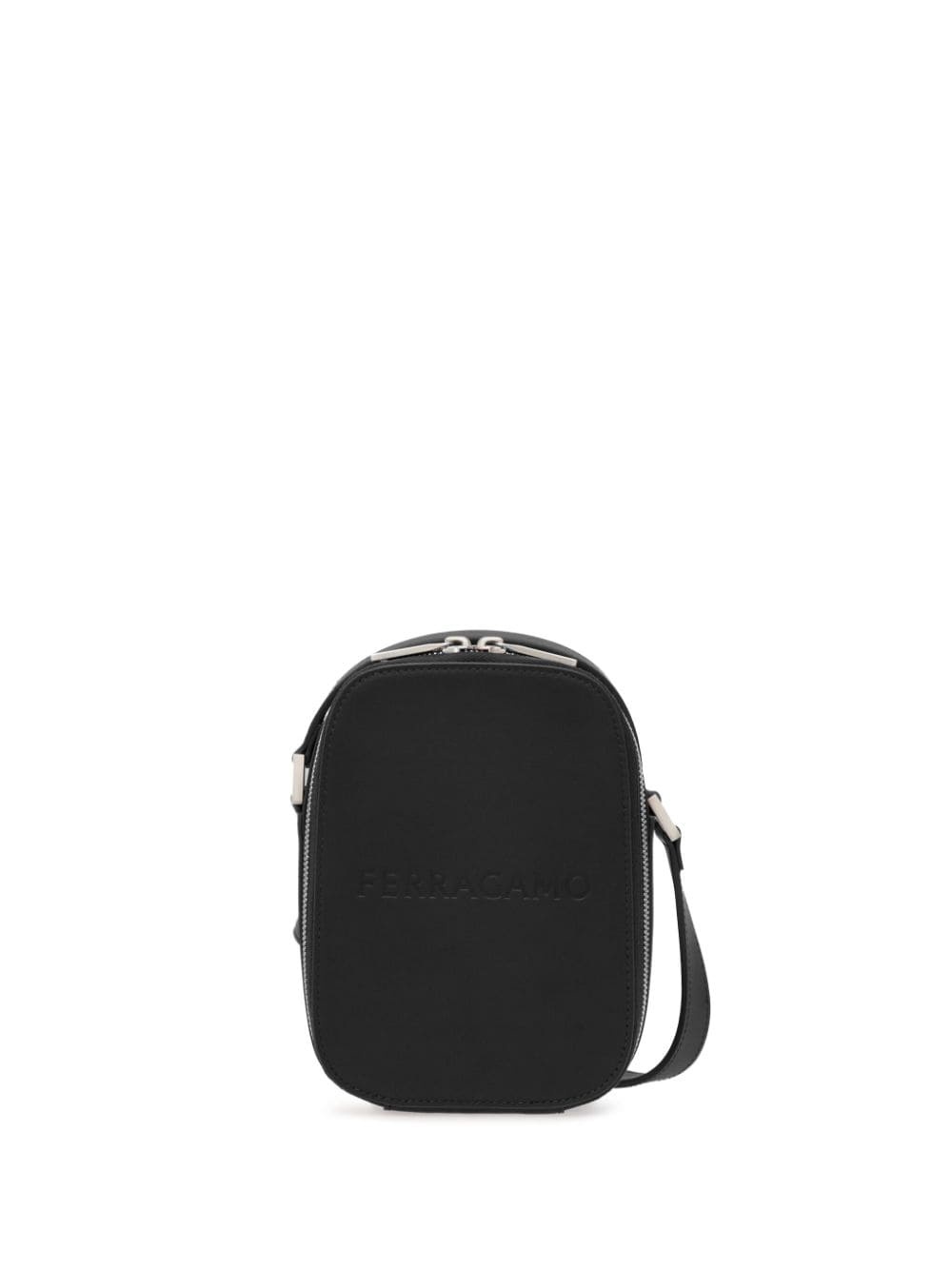 logo-debossed leather shoulder bag Highlights - Black - Calf leather - Embossed logo to the front - Silver-tone hardware - Two-way zip fastening - Single shoulder strap - Main compartment - Multiple internal slip pockets Made in Italy Composition Outer: CALFSKIN 100% Lining: Fabric 85%, CALFSKIN 15% SIZE & FIT Measurement DEPTH 1.96 in(5 cm) HEIGHT 7.48 in(19 cm) WIDTH 5.51 in(14 cm)