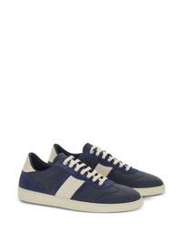 logo-debossed leather sneakers Highlights - Navy blue - Calf leather - Grained texture - Colour-block panelled design - Logo-debossed tongue - Logo at the sole - Round toe - Front lace-up fastening - Contrasting heel counter - Branded insole - Flat rubber sole Made in Italy Composition Lining: Fabric 100%, Calf Leather 100% Outer: Calf Leather 100% Sole: Rubber 100%
