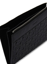 logo-embossed leather clutch bag