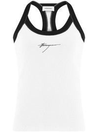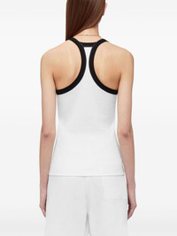 logo-embroidered cotton tank top Highlights - White/black - Organic cotton - Jersey texture - Fine ribbed - Embroidered logo to the front - Contrasting trim - Scoop neck - Sleeveless - Racerback - Straight hem Made in Italy Composition Outer: Organic Cotton 100% Lining: Cotton 95%, Elastane 5%