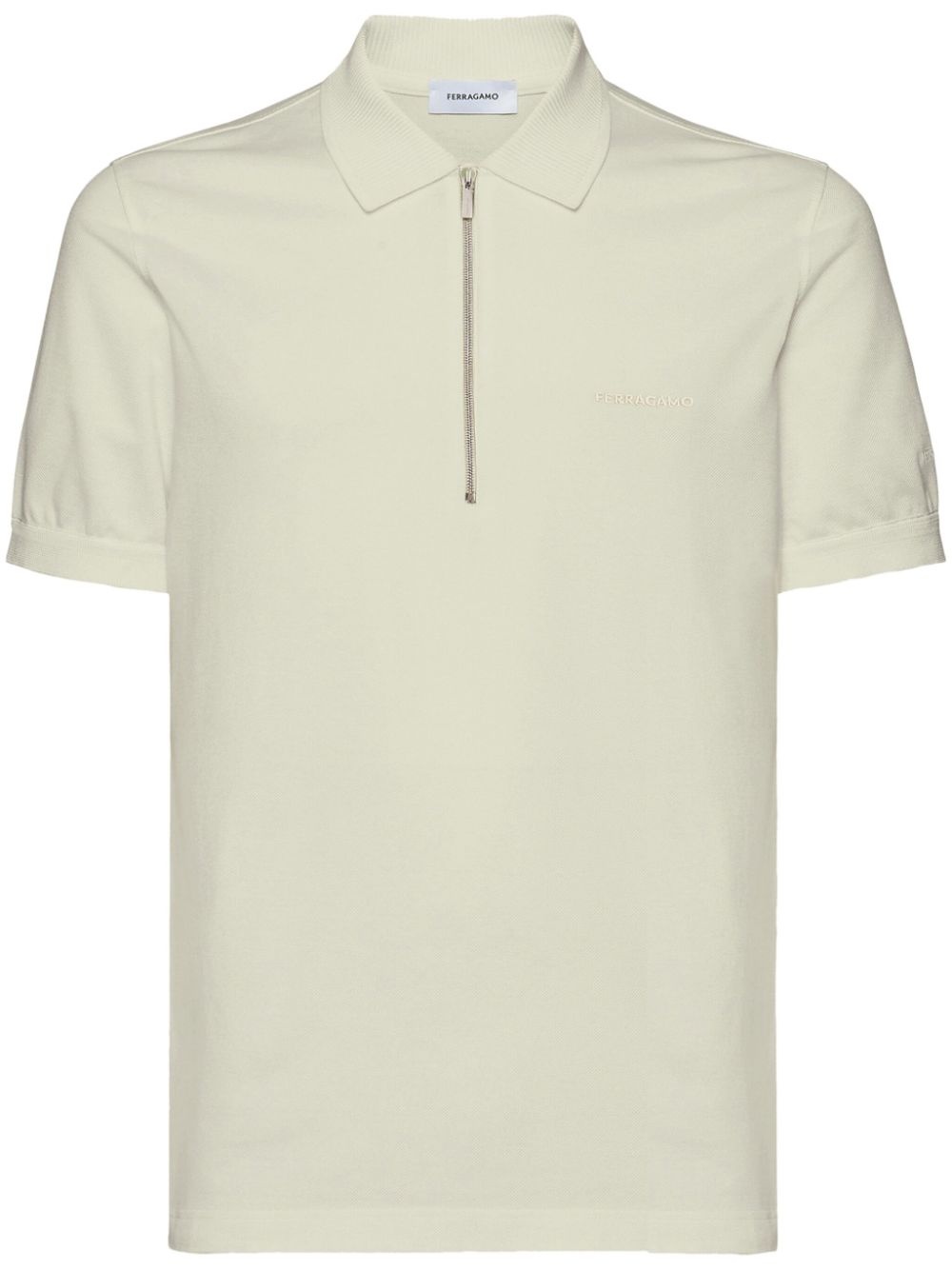 logo-embroidered half-zip polo shirt Highlights - Light green - Cotton - Embroidered logo at the chest - Polo collar - Half front zip fastening - Short sleeves - Straight hem Made in Italy Composition Cotton 100%