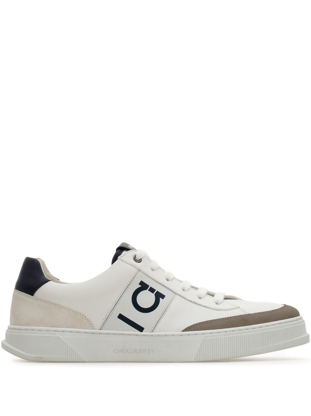 logo-embroidered leather sneakers Highlights - White - Contrasting suede panels - Logo embroidery to the side - Round toe - Rubber sole - Lace-up fastening Made in Italy Composition Outer: CALFSKIN 90%, Calf Suede 10% Lining: Fabric 100%, Calf Leather 100% Sole: Rubber 100%