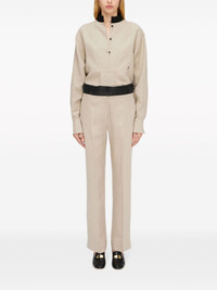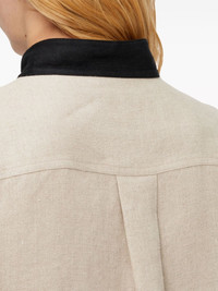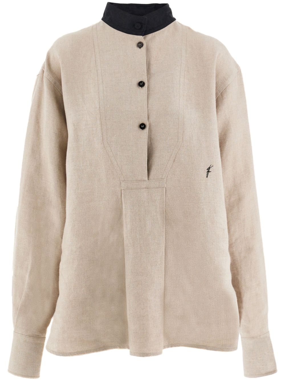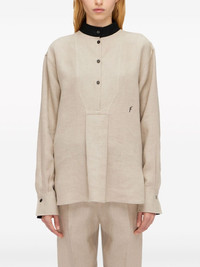 logo-embroidered linen shirt Highlights - Sand beige/black - Linen - Band collar - Front button fastening - Drop shoulder - Buttoned cuffs - Pleat detailing - Embroidered logo - Rear curved hem Made In Italy Composition Outer: Linen/Flax 100% Washing instructions Read Manufacturer Guidelines