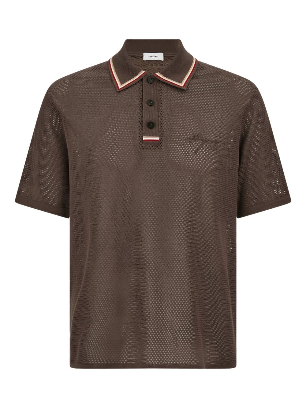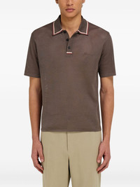 logo-embroidered polo shirt Highlights - Taupe brown - Front button placket - Stripe detailing - Polo collar - Short sleeves Made in Italy Composition Cotton 100%