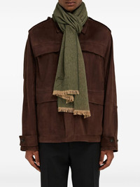 logo-embroidery scarf Highlights - Green/beige - Cashmere blend - Fine knit - Embroidered logo - Fringed edge Made in Italy Composition Outer: Cashmere 95%, Virgin Wool 5% SIZE & FIT Measurement LENGTH 90.55 in(230 cm) WIDTH 13.77 in(35 cm) Washing instructions Dry Clean Only