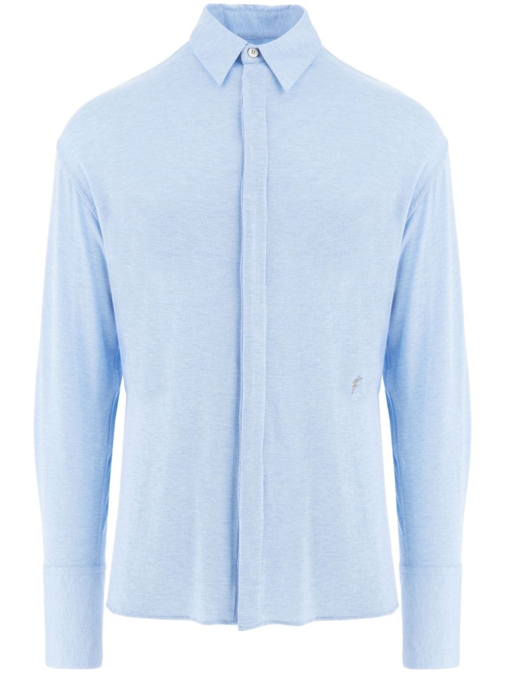 logo-embroidery stretch-jersey shirt Highlights - Light blue - Stretch-jersey - Classic collar - Concealed front button fastening - Long sleeves - Buttoned cuffs - Embroidered logo to the front - Straight hem Made in Italy Composition Outer: Viscose 90%, Polyamide 10%