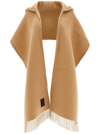 logo-patch hooded scarf Highlights - Camel brown - Wool-cashmere blend - Logo patch to the front - Fringe detailing - Classic hood - Wraparound style Made in Italy Composition Outer: Wool 59%, Cashmere 41% SIZE & FIT Measurement LENGTH 82.67 in(210 cm) WIDTH 14.17 in(36 cm)