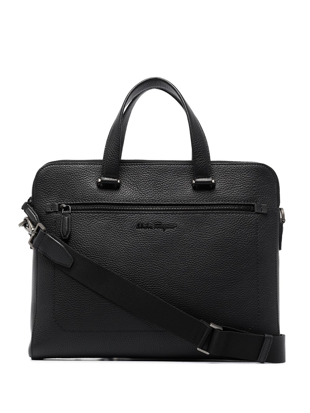 logo-plaque leather briefcase Made from grained leather, this briefcase from Ferragamo mixes functionality with a modern style. It boasts a main compartment and a laptop pocket, while the tonal logo plaque gives it a contemporary look. Made in Italy Composition Outer: Leather 100% SIZE & FIT Model measurements Height 6 ft 3 in(1.9 m) Bust/Chest 34.64 in(88 cm) Hips 34.64 in(88 cm) Waist 26.37 in(67 cm) Measurement DEPTH 1.37 in(3.5 cm) HEIGHT 11.02 in(28 cm) WIDTH 14.56 in(37 cm)