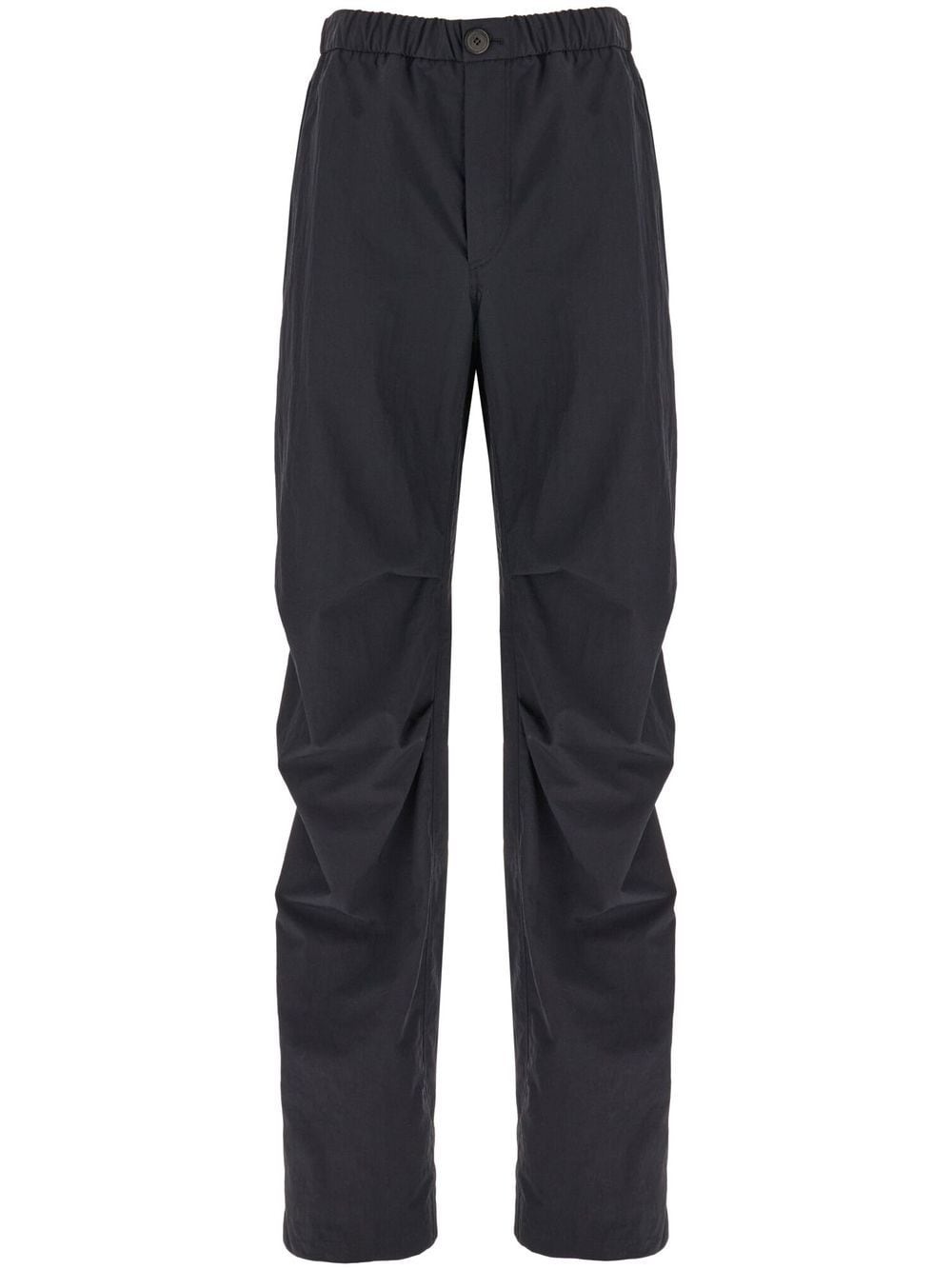 logo-plaque straight-leg trousers black cotton/nylon logo plaque pressed crease belt loops concealed front zip fastening two side slit pockets two rear welt pockets Made in Italy Composition Nylon 74%, Cotton 26%
