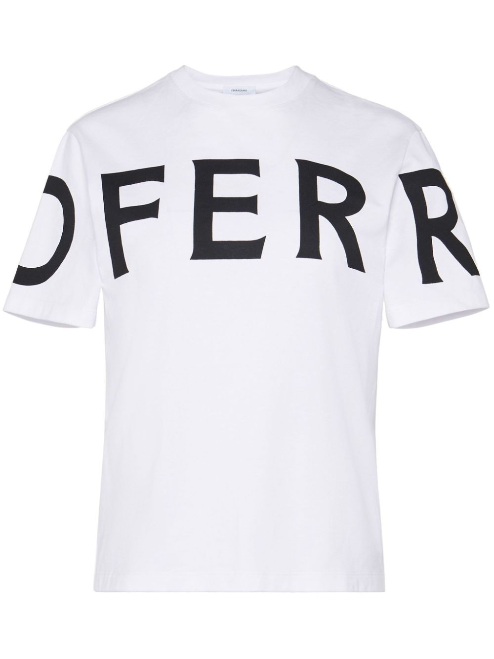 logo-print cotton T-shirt Highlights - Optical white - Cotton - All-over logo print - Round neck - Short sleeves - Straight hem Made in Italy Composition Outer: Cotton 100%