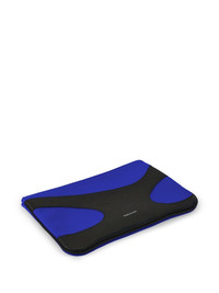 logo-print cut out smartphone case Highlights - Royal blue/black - Leather - Grained texture - Logo print to the front - Branded zip puller - Silver-tone hardware - Cut-out detailing - Internal logo patch - Main compartment - Canvas lining Made in Italy Composition Outer: CALFSKIN 100% Lining: Fabric 99%, CALFSKIN 1% SIZE & FIT Measurement HEIGHT 5.51 in(14 cm) WIDTH 8.26 in(21 cm)