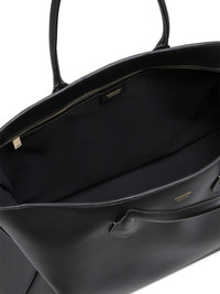 logo-print leather tote bag Highlights - Black - Calf leather - Smooth grain - Logo print to the front - Two rolled top handles - Luggage tag - Internal zip-fastening pocket - Main compartment Made in Italy Composition Outer: CALFSKIN 95%, Fabric 5% SIZE & FIT Measurement WIDTH 17.32 in(44 cm) HEIGHT 12.99 in(33 cm) DEPTH 6.29 in(16 cm)