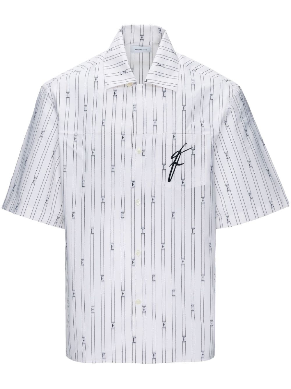 logo-print short-sleeve shirt Highlights - White/black - Cotton blend - All-over logo print - Embroidered logo at the chest - Pinstripe pattern - Spread collar - Front button fastening - Short sleeves - Chest patch pocket - Straight hem Made in Italy Composition Outer: Cotton 90% Lining: Polyester 10%