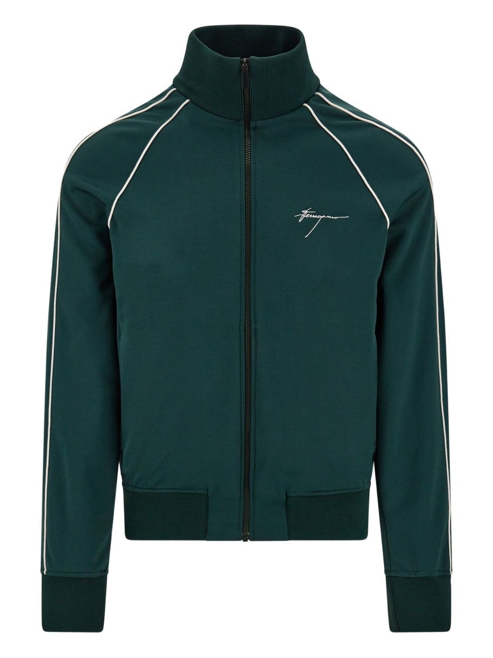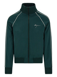 logo-print tracksuit top Highlights - Moss green - Front zip fastening - High neck - Long sleeves - Ribbed cuffs and hem Made in Italy Composition Outer: Polyester 54%, Cotton 46% Lining: Cotton 100%