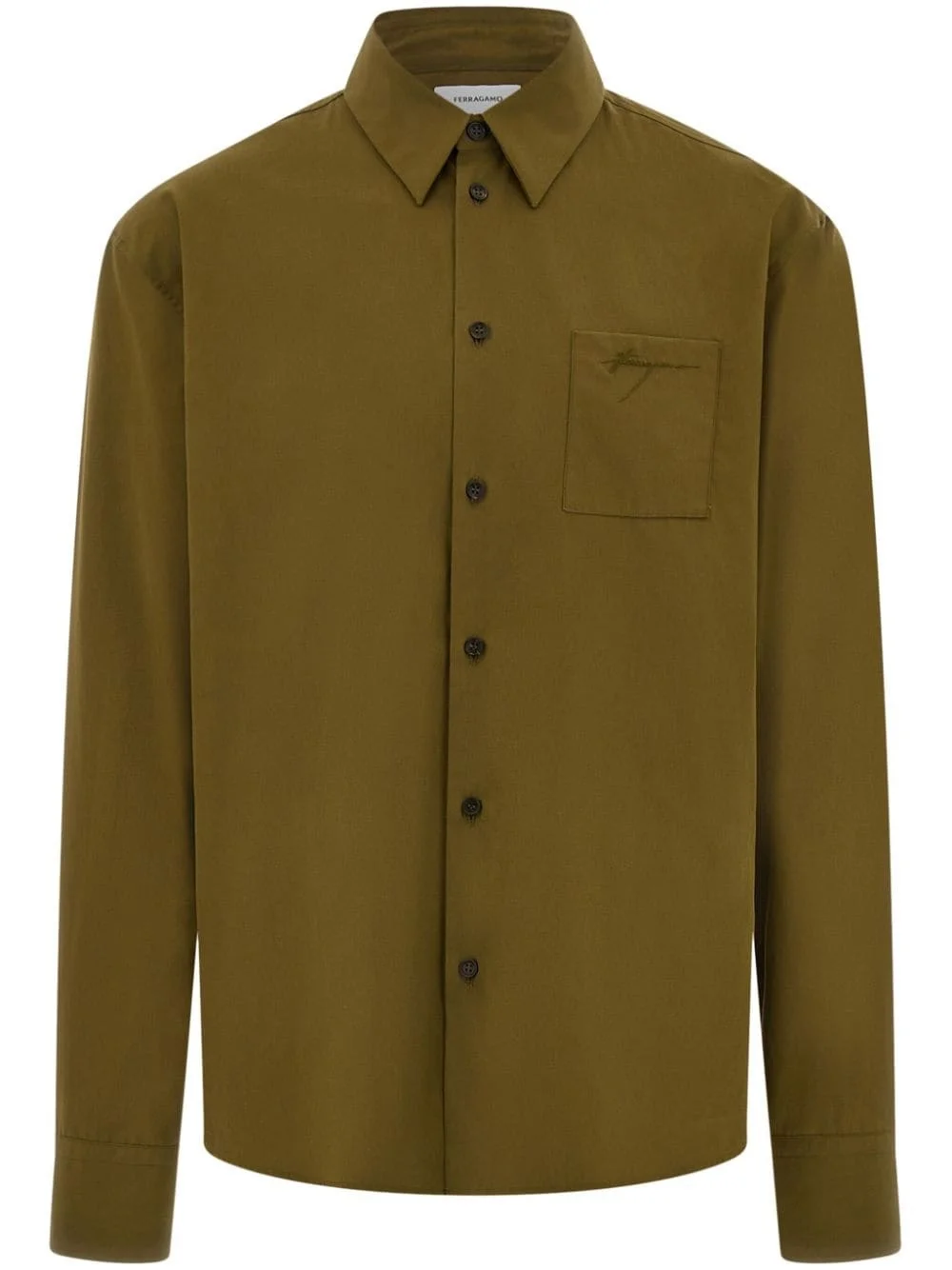 long-sleeve shirt Highlights - Olive green - Cotton - Embroidered logo at the chest - Chest patch pocket - Pointed flat collar - Long sleeves - Buttoned cuffs - Front button fastening - Curved hem Made in Italy Composition Cotton 100%