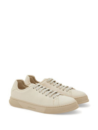 low-top sneakers Highlights - Light beige - Front lace-up fastening - Rubber sole - Logo at the sole - Silver-tone logo plaque Made in Italy Composition Outer: Bos Taurus 100% Lining: Lambskin 60%, Goat Skin 30% Sole: Rubber 100%